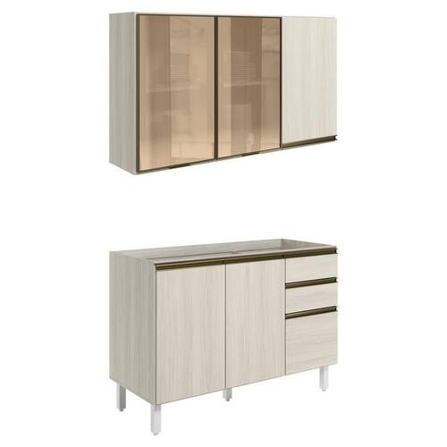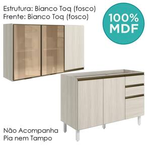 Conjunto de Armário Aéreo 3 Portas e Balcão sem Tampo para pia, funcional e moderno, ideal para composições que otimizam o espaço com elegância. Fabricado 100% em MDF, com estrutura de 15mm, forro de fundo de 3mm e acabamento em pintura UV (fosco ou brilho). O Conjunto é composto por 1 armário aéreo com 2 portas de vidro reflecta e 1 em MDF com dobradiças de 35mm com amortecedor, que garantem fechamento suave e silencioso, além de puxadores em perfil de alumínio e 2 prateleiras internas. O Balcão conta com 3 gavetas com corrediças telescópicas, 1 prateleira interna e 2 portas com dobradiças de 35mm com amortecedores. Os 5 pés possuem altura de 15,5cm com regulagem adicional de 1,5cm, garantindo estabilidade em qualquer piso. Não acompanha tampo nem pia. Estes móveis chegarão em sua casa separados em 04 volumes.