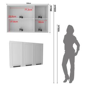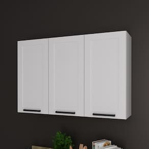 Armário Aéreo 3 Portas CZ3310 Tecno Mobili, O modelo CZ3310 é um armário aéreo de três portas feito totalmente em MDF, com acabamento branco que traz leveza e modernidade ao ambiente. Suas portas almofadadas recebem puxadores em alumínio preto e utilizam dobradiças retas tipo caneco de 35 mm com amortecimento slow motion, proporcionando abertura e fechamento suaves. As bordas revestidas em PVC reforçam a proteção contra impactos e umidade, aumentando a vida útil do móvel. Características: Estrutura em MDF 3 Portas Puxadores em alumínio preto Porta almofadada Dobradiça reta Bordas em PVC Prateleira suporta até 3kg Dimensões: Altura: 80 cm Largura: 120 cm Profundidade: 31,8 cm Peso: 27,25 kg Garantia do fornecedor de 3 meses