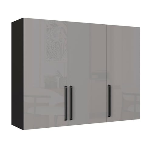 Armário Aéreo 3 Portas Indekes Isa, Chumbo e Titânio, 120 cm