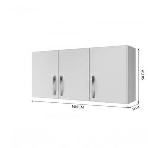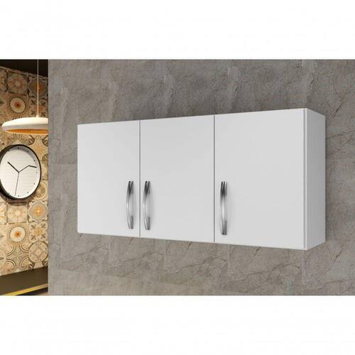 Lindo, prático e funcional, armário aéreo 3 portas com belíssimo acabamento e excelente espaço interno para você utilizar na cozinha, áreas ou onde sua imaginação mandar, pois, este produto é muito versátil. Possui acabamento em pintura uv puxadores cromados e prateleira interna. Fica muito bem em diversos ambientes.