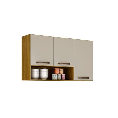 Armário Aéreo 3 Portas Maísa Chf Móveis Cinamomo/off White