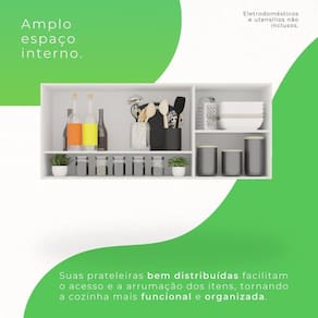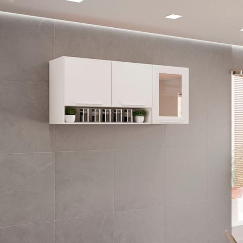 Pensando em organizar sua cozinha e poupar espaço no ambiente mais gostoso da sua casa? Com este incrível armário aéreo Reflecta Bella você terá aproveitamento de espaço e organização na sua cozinha. Espaçoso, ele é ideal para deixar o lugar mais bonito e aconchegante, além de dar aquela força na hora de arrumar as panelas, mantimentos ou o que mais você preferir. Cores modernas que combinam com o ambiente. Acabamento da Prateleira: Pintura UV Escala de Brilho da Prateleira: Brilhante Acabamento da Porta: Pintura UV Escala de Brilho da Porta: Brilhante Material do Puxador da Porta: MDF Ambiente Principal: Cozinha codigo_ean: 7909903502921 Complexidade da Montagem: Média: pode ser montado por mais de uma pessoa e/ou necessite de maior conhecimento para montagem Cor: Branco Cor do Produto: Branco Escala de Brilho: Brilhante Itens Inclusos: 1 Armário Aéreo Reflecta, Manual de Montagem e Kit Ferragens Linha ou Coleção: Bella Manual de Montagem e Instalação: https://product-hub-prd.madeiramadeira.com.br/882330/documents/8e10388e-127a-4f80-8773-de73d5ad21adortasvidroreflectavalencia.pdf Material da Dobradiça/Corrediça da Porta: Metálica Material da Porta: MDF/MDP Material da Prateleira: MDP Necessita Montagem: Sim Origem do Produto: Nacional Peso: 16,4 kg Peso Máximo por Prateleira: 5 kg Possui Espelho: Não Possui Possui Pés: Suspenso Possui Portas: Sim Possui Prateleiras: Sim Possui Vidro: Sim Produto Montado: Sim Recomendações de Uso, Manutenção e Limpeza: Para limpar corretamente seus armários de madeira, use sempre um pano liso e levemente umedecido com água. Sapatas Niveladoras: Não Sistema de Montagem: Parafusos, Cavilhas, Dobradiças e Puxadores. Suporta Até (kg): 10 kg Tipo de Dobradiça/Corrediça da Porta: 35 mm Tipo de Puxador da Porta: Externo