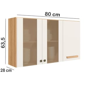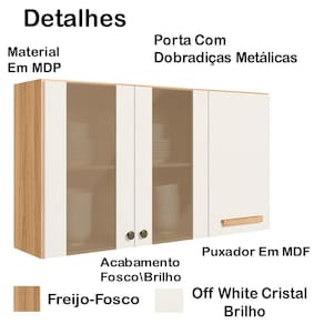 Armário Aereo 16982 acabamento refinado e visual sofisticado. Estrutura em MDP, com caixa de 12 mm e frente em 15 mm, e excelente acabamento em Fosco/Brilho. O armário aereo é composto por 03 portas, sendo 2 com vidros, com dobradiças metálicas, para garantir a suavidade no abrir e fechar, 1 prateleira interna e puxadores em MDF. Este móvel chegará em sua casa separado em 01 volume.