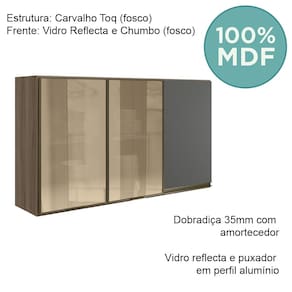 Armário Aéreo para cozinha desenvolvido para composições modernas e funcionais. Fabricado 100% em MDF, com estrutura de 15 mm e forro de fundo de 3 mm. Além disso conta com 2 portas de vidro reflecta e 1 em MDF com dobradiças de 35mm com amortecedor, que garantem fechamento suave e silencioso, e 1 prateleira interna. Os puxadores em perfil de alumínio completam o produto com um visual funcional e moderno, enquanto o vidro reflecta traz um toque sofisticado e reflexivo. Este móvel chegará em sua casa separado em 02 volumes.