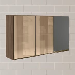 Armario Aereo 3p Vid Mdf 120cm Kali 1219764 Carvalho Toq Chumbo Nicioli Carvalho Toq Chumbo