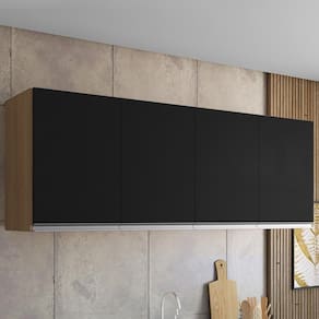 Armário Aéreo 4 Portas, compacto e funcional trazendo praticidade para sua cozinha. Estrutura em MDP (12/ 15 mm - fundo 3 mm). Composto por portas com dobradiças metálicas, 1 prateleira interna e puxadores em alumínio e acompanha kit para fixação na parede (verificar riscos de perfurações). Produto será entregue em 01 volume.
