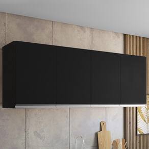 Armário Aéreo 4 Portas, compacto e funcional trazendo praticidade para sua cozinha. Estrutura em MDP (12/ 15 mm - fundo 3 mm). Composto por portas com dobradiças metálicas, 1 prateleira interna e puxadores em alumínio e acompanha kit para fixação na parede (verificar riscos de perfurações). Produto será entregue em 01 volume.