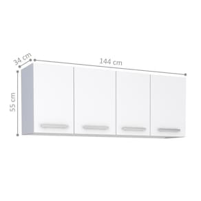 ALTURA DO PRODUTO COM EMBALAGEM (CM): 85 | COMPRIMENTO DO PRODUTO (CM): 34 | COMPRIMENTO PRODUTO COM EMBALAGEM (CM): 147 | ALTURA DO PRODUTO (CM): 55 | INSTRUÇÕES/CUIDADOS: Limpar com pano macio e seco, não utilizar produtos abrasivos | DESCRIÇÃO DO TAMANHO: 55x144x34 cm | TIPOS DE MÓVEIS DE COZINHA: Armário Suspenso | COR PREDOMINANTE: Branco | PRODUTO: Armário | LARGURA PRODUTO COM EMBALAGEM (CM): 59 | CORES DO PRODUTO (FILTRO DE CORES): Branco | PRODUTO PRECISA DE MONTAGEM?: Sugerimos a contratação de um montador para a montagem do produto. Não nos responsabilizamos por causadas no ato da montagem. | PESO DO PRODUTO (KG): 18 | MARCA: CasaH | MATERIAL PRINCIPAL: Aço | LARGURA DO PRODUTO (CM): 144 | ESTADO DE ORIGEM: SP | PESO PRODUTO COM EMBALAGEM (KG): 18 | MATERIAL PARA FILTRO: Aço | CONTEÚDO DA EMBALAGEM: 1 Armário | QUANTIDADES DE CAIXAS DE EMBALAGEM: 1
