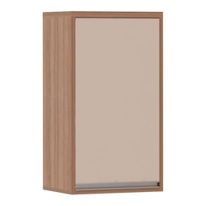 Características: Corpo/Caixaria: MDP Vanilla UV Touch Frontais: MDP Connect BP Dobradiças: Metálicas Ø26 mm Puxadores: Alumínio Gola - Inox Portas: 1 Prateleiras: 1