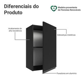 O acabamento de alta resistência em preto garante um visual moderno e sofisticado à cozinha. O tom marcante valoriza o ambiente.