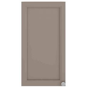 Porta de bater almofadada/moldurada em MDF 4mm, dobradiças de 35mm, prateleira interna, puxador retrô em polímero metalizado.