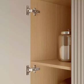 Além da estética, o armário é projetado para proporcionar máxima funcionalidade. As dobradiças Slow Motion com freio anti-impacto oferecem um fechamento suave e silencioso, mantendo sua qualidade e durabilidade ao longo do tempo. Com amplo espaço de armazenamento, as prateleiras bem distribuídas são perfeitas para organizar utensílios e mantimentos, oferecendo praticidade e facilidade no dia a dia. O uso de materiais de alta qualidades como MDF de 15 mm na caixa, molduras de 18 mm e fundo em Duratree de 3mm, assegura resistência e longevidade ao produto. A fita de acabamento em polipropileno protege os topos contra umidade e garante um acabamento impecável.