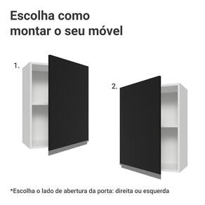 Produzido com materiais de alta qualidade, o armário oferece excelente aproveitamento interno, com prateleira ideal para organizar louças, utensílios e mantimentos. As portas possuem sistema de amortecimento, garantindo um fechamento suave e silencioso. Os puxadores no estilo cava, em perfil de alumínio, completam o visual moderno e elegante do móvel.