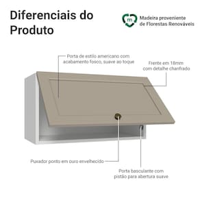 O acabamento da estrutura é branco e da porta no tom crema, reforçando o visual elegante da linha Vik. Possui uma textura suave ao toque, trazendo sofisticação ao ambiente. O destaque fica por conta do puxador ponto em ouro envelhecido, feito com metal resistente, traz personalidade e um charme único. Outro diferencial está no detalhe chanfrado das frentes, que forma molduras, refletindo o estilo americano com um toque moderno.