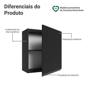 O acabamento de alta resistência em preto garante um visual moderno e sofisticado à cozinha. O tom marcante valoriza o ambiente.