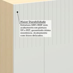 Material: Corpo em MDF 15mm e frontal em MDF 15mm, com acabamento em Pintura PET, que garante durabilidade e facil limpeza.
