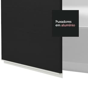 O acabamento da estrutura da cozinha é branco e as portas e frentes são pretas. É feito em Pintura Poliéster com 7 camadas que protegem o móvel dos efeitos do álcool da água e do calor.