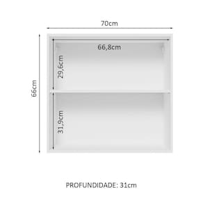 O Armário Aéreo de 70 cm da linha Lux da Madesa é a opção ideal para ampliar a sua cozinha. Possui muito espaço para a organização de louças, mantimentos e utensílios.