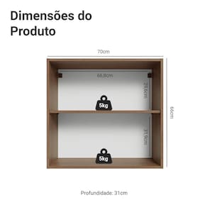 Com o Armário Aéreo de 70 cm com 2 Portas da Linha Vik da Madesa, você aproveita todo o espaço da sua cozinha. Seus dois compartimentos internos oferecem organização prática para utensílios, louças ou mantimentos, proporcionando total aproveitamento do espaço.
