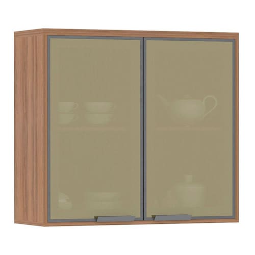 Armário Aéreo 80 cm 2 Portas de abrir Vidro Reflecta 1 Prateleira Isa Luciane Móveis O Armário Aéreo com 80 cm Isa foi desenvolvido aliando beleza e praticidade ao seu ambiente. Conta com 2 portas em vidro reflecta bronze, 1 prateleira interna, puxador perfil alumínio cinza. Acompanha sistema para fixação na parede.