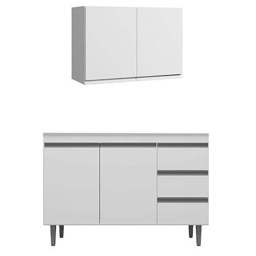 Armário Aéreo 80 cm com balcão de pia 100 cm Andréia branco brilho AJL