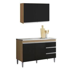 Armário Aéreo 80 cm com Balcão de Pia 100 cm Andréia Preto Amêndoa AJL