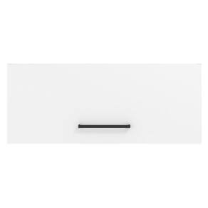 Este Armário Aéreo conta com uma porta basculante com puxador de alça em alumínio. Além disso, a porta possui dobradiças metálicas com amortecimento que proporcionam um fechamento suave e pistão a gás que a mantém suspensa.