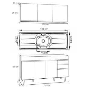 Conteúdo da Embalagem: 1 Armário Aéreo, 1 Balcão, 1 Pia.