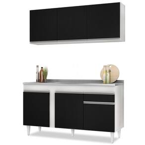 Ter uma Cozinha Compacta bonita e funcional é possível e posso provar, vem conhecer o Armário Aéreo Argélia e Balcão Gabinete com Pia Inox 150cm Dakota Branco/Preto, da Lumil!