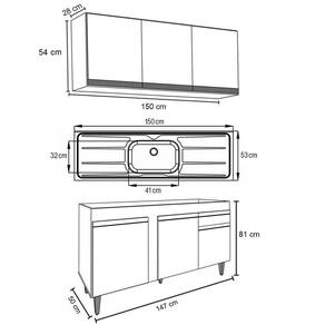 Conteúdo da Embalagem: 1 Armário Aéreo, 1 Balcão, 1 Pia.