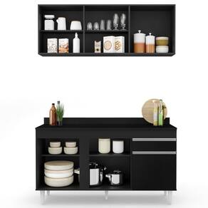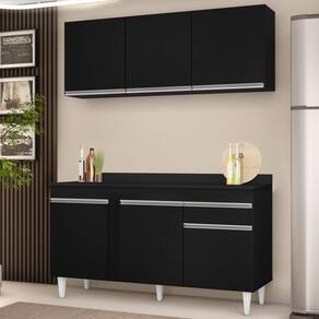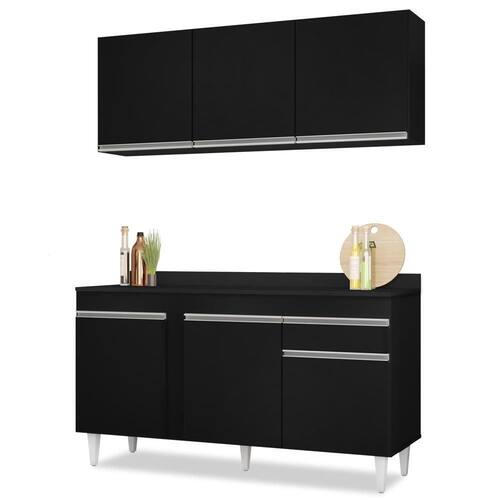 Para quem procura uma Cozinha completa, nós temos a melhor opção, conheça o Armário Aéreo Argélia e Balcão Gabinete com Tampo 150cm Dakota Preto, da Lumil!