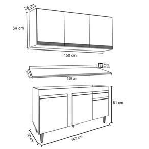 Conteúdo da Embalagem: 1 Balcão, 1 Tampo, 1 Armário Aéreo.