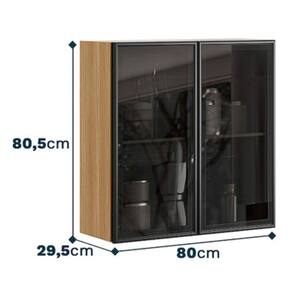 Armário Aéreo Art 2 Portas Vidro 80 cm Freijó Preto Kit's Paraná