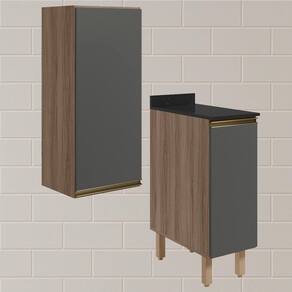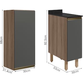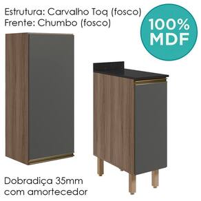 Conjunto de Armário Aéreo e Balcão com Tampo para cozinha, funcional e moderno, ideal para composições que otimizam o espaço com elegância. Fabricado 100% em MDF, com estrutura e tampo de 15mm e forro de fundo de 3mm, o conjunto é composto por 1 armário aéreo com 1 porta com dobradiças de 35mm com amortecedor, que garantem fechamento suave e silencioso, além de um puxador em perfil de alumínio, e 1 balcão com tampo que conta com 1 porta, 1 prateleira interna, puxador em perfil de alumínio e 4 pés com altura de 15,5cm e regulagem adicional de 1,5cm, assegurando estabilidade em diferentes tipos de piso. Estes móveis chegarão em sua casa separados em 05 volumes.