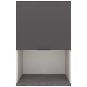 Equipado com porta basculante, esse móvel ainda conta em sua estrutura com nicho para micro-ondas, puxador em alumínio, sistema de dobradiças com amortecedor e pistão a gás que permite abrir e fechar a porta sem impacto, acabamento em finish foil que possibilita maior vida útil ao produto e capacidade para suportar até 36kg bem distribuídos.