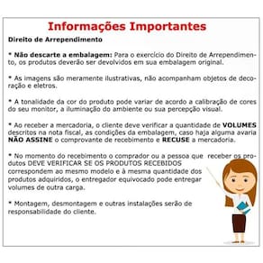 A tonalidade da cor do produto pode variar de acordo a calibração de cores do seu monitor, a iluminação do ambiente ou sua percepção visual.