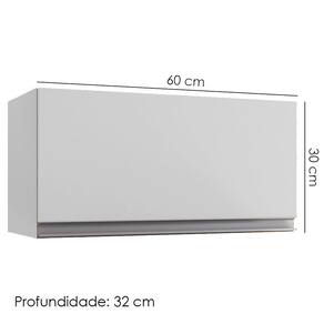 Armário Aéreo Basculante 60 cm, estilo moderno e praticidade para sua cozinha. Estrutura em MDP (12/ 15 mm - fundo 3 mm). Com porta basculante com dobradiças metálicas e pistão a gás, puxadores em alumínio. Acompanha kit para fixação na parede (verificar riscos de perfurações). Produto será entregue em 01 volume.