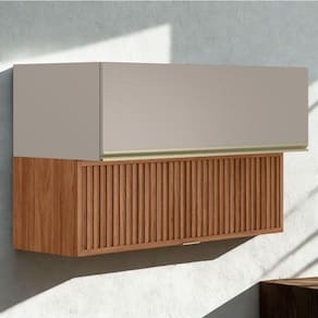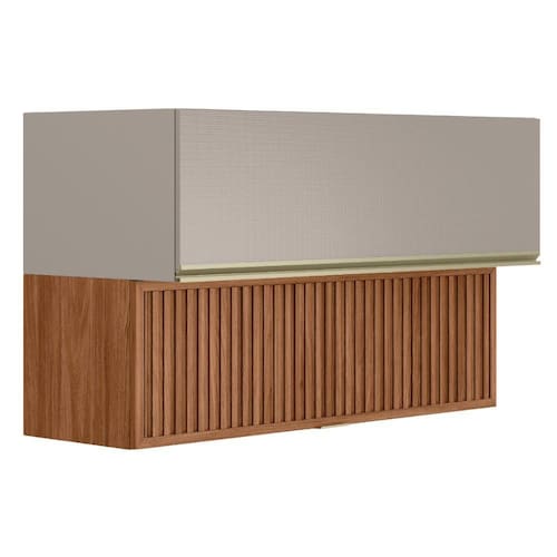Funcional e moderno, o Armário Basculante 120 cm é ideal para otimizar o espaço da cozinha com praticidade. Produzido 100% em MDF (15 mm) com acabamento em pintura UV. Conta com portas basculantes, equipadas com pistão a gás e dobradiça 35mm (sendo uma com detalhe ripado). Este produto será entregue em 02 volumes.