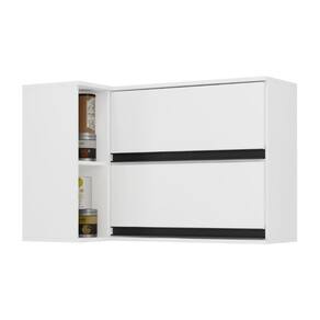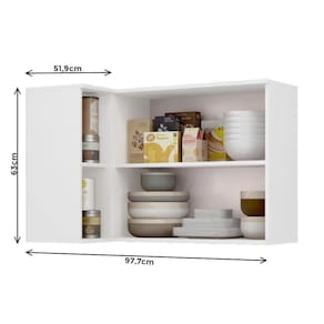 Armário Aéreo Canto 2 Portas Visão Móveis Vicenza Branco O Aéreo de Canto Visão Móveis Vicenza 97,7cm conta com 2 portas basculantes com pistão a gás e conta ainda, com 2 Nichos! Fabricado em MDP 15mm com pintura UV Texturizada, possui puxadores em plástico com acabamento em aluminio. Se apaixonou? Então não deixe para depois clica em comprar! Cor: Branco