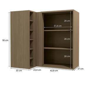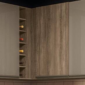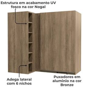 O Armário aéreo de canto com adega é ideal para otimizar espaços, proporcionando funcionalidade e organização. Móvel suspenso, produzido 100% em MDP com espessura de 15 mm e acabamento em pintura texturizada UV (fosco) ou (semibrilho). Possui 1 porta equipada com dobradiças metálicas e puxadores em alumínio. Conta também com uma adega lateral com 6 nichos. Este móvel chegará na sua casa separado em 02 volumes.
