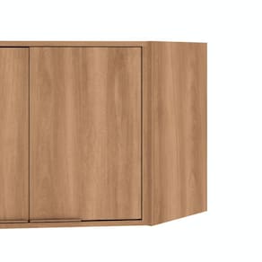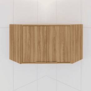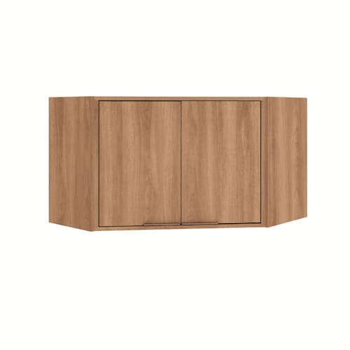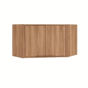 Projetado para ser instalado em cantos, este armario aereo conta com prateleira interna, puxadores plasticos e acabamento de qualidade, sendo perfeito para armazenar utensilios, mantimentos ou objetos decorativos com eficiencia.