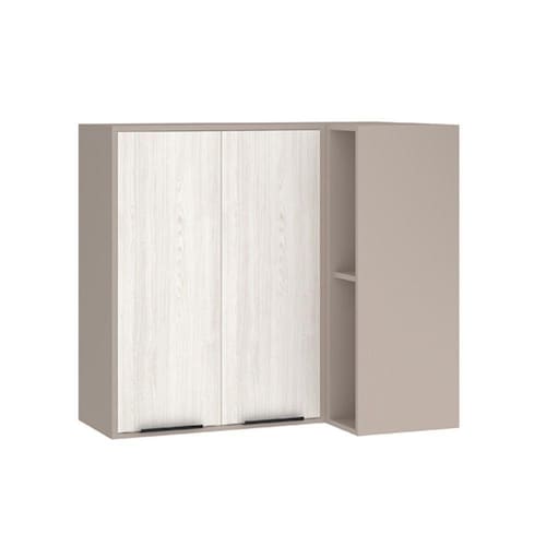 Armário Aéreo Canto Reto 95cm 2 Portas E Nichos Stylo Luciane Móveis Cinammon/teka ártico Desenvolvida com materiais de excelencia, a Cozinha Stylo oferece excelente distribuicao de espaco interno. E estruturada em 100 MDP e possui dobradicas slow motion com amortecedor incorporado para fechamento suave das portas. Conta com puxadores tipo aste em Aluminio Preto dando um toque especial de classe e elegancia. Armario Aereo Canto Reto 95cm 2 Portas e Nichos Stylo Luciane Moveis