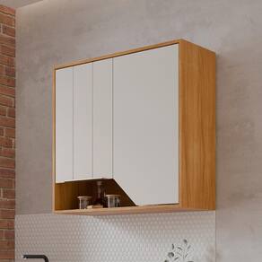Produzido em MDF resistente, conta com 2 portas com dobradiças metálicas e fechamento soft close, além de puxadores modernos e 2 prateleiras para organizar seus utensílios com praticidade.