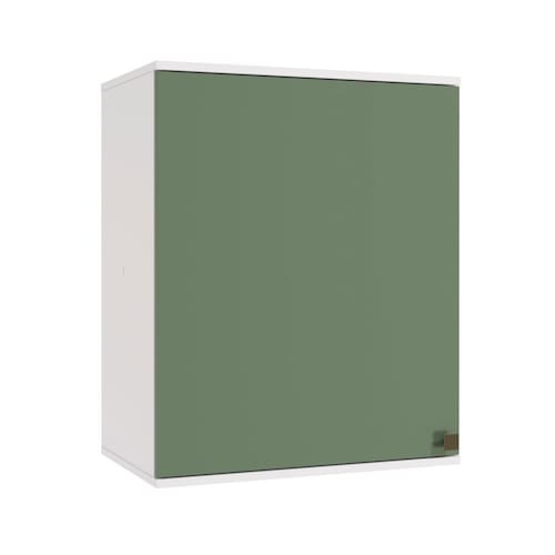 Sua cozinha com toda a beleza e praticidade do Aéreo 1 Porta 60cm N744 da Cozinha Celeste da Kappesberg. Produzido em chapa MDF de 15mm, ele garante robustez, firmesa e qualidade, além de um acabamento perfeito. Com sete camadas de pintura, tanto na parte interna quanto na externa, a caixaria conta com acabamento em brilho na cor branca, enquanto que a porta, com pintura na cor verde, possui acabamento fosco, uma combinação moderna e única, que fará a diferença no seu espaço, deixando sua cozinha perfeita. Versátil em todas as composições, o aéreo possui uma portas e duas prateleiras, além de muito espaço para organizar louças e mantimentos. Fechando uma ótima combinação com o balcão de mesmo tamanho, destaque fica para as dobradiças com amortecimento, garantindo um fechamento suave e sem ruídos, incluindo mais durabilidade. E seu puxador metálico quadrado na cor dourada completa o design e a qualidade da cozinha, deixando seu ambiente ainda mais estiloso. Renove seu espaço e o deixe ainda mais completo com a Cozinha Celeste da Kappesberg.