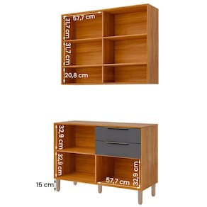Material da estrutura: Tampos e Laterais em MDF 15mm; Prateleira e portas em MDF 12mm com ripado em MDF em 6mm;