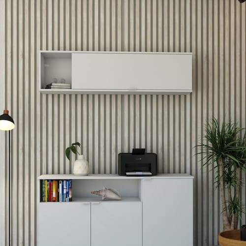 O Armário Aéreo com Nicho e Porta Basculante WorkLab é uma peça de mobiliário que alia design contemporâneo e funcionalidade avançada, ideal para escritórios que buscam otimizar o espaço vertical. Com linhas retas e um visual clean, oferece um espaço aberto para decoração ou para manter itens essenciais bem organizados. A porta basculante com pistão a gás permite um acesso fácil e um fechamento suave, evitando impactos e ruídos, além do puxador em alumínio, discreto e funcional. O Armário Aéreo WLNP135 WorkLab é uma solução inteligente que combina estética e praticidade, ideal para manter o ambiente de trabalho organizado e elegante. Acabamento da Porta: BP Ambiente Principal: Escritório Complexidade da Montagem: Alta: deve ser montado por um montador especializado Cor: Branco Cor do Produto: Branco Cor Interna: Branco TX Escala de Brilho: Fosco Escala de Brilho da Porta: Fosco Itens Inclusos: 1 Nicho Manual de Montagem e Instalação: https://cdn2.madeiramadeira.com.br/prd/compace-sala-de-jantar/2359871-1726777716-950138-109604.pdf Material da Porta: MDP Material do Puxador da Porta: Alumínio Material Principal: MDP Necessita Montagem: Sim Origem do Produto: Nacional Peso: 17,175 kg Possui Espelho: Não Possui Nicho: Sim Possui Pés: Não Possui Portas: 01 Possui Prateleiras: Não Recomendações de Uso, Manutenção e Limpeza: Para a limpeza, utilize flanela seca ou pano macio levemente umedecido em água. Utilize um pano seco em seguida. Evite contato com produtos químicos (solventes, thinner, acetona, etc) e não utilize nenhum tipo de esponja de aço. Sapatas Niveladoras: Sim Sistema de Montagem: Parafuso, Cavilha, Minifix, Dobradiça, Prego e sapata niveladora Suporta Até (kg): 15 kg Tipo de Dobradiça/Corrediça da Porta: Metálica Tipo de Puxador da Porta: Externo Marca: Metalig