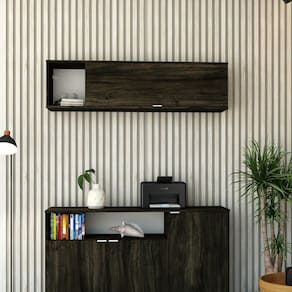 O Armário Aéreo com Nicho e Porta Basculante WorkLab é uma peça de mobiliário que alia design contemporâneo e funcionalidade avançada, ideal para escritórios que buscam otimizar o espaço vertical. Com linhas retas e um visual clean, oferece um espaço aberto para decoração ou para manter itens essenciais bem organizados. A porta basculante com pistão a gás permite um acesso fácil e um fechamento suave, evitando impactos e ruídos, além do puxador em alumínio, discreto e funcional. O Armário Aéreo WLNP135 WorkLab é uma solução inteligente que combina estética e praticidade, ideal para manter o ambiente de trabalho organizado e elegante. Acabamento da Porta: BP Acetinado Ambiente Principal: Escritório Complexidade da Montagem: Alta: deve ser montado por um montador especializado Cor: Carvalho/Preto Cor do Produto: Carvalho/Preto Cor Interna: Carvalho/Preto Escala de Brilho: Fosco Escala de Brilho da Porta: Fosco Itens Inclusos: 1 Nicho Manual de Montagem e Instalação: https://cdn2.madeiramadeira.com.br/atributo/compace-dalex/2349540-1708-17266659694574.pdf Material da Porta: MDP Material do Puxador da Porta: Alumínio Material Principal: MDP Necessita Montagem: Sim Origem do Produto: Nacional Peso: 17,175 kg Possui Espelho: Não Possui Nicho: Sim Possui Pés: Não Possui Portas: 01 Possui Prateleiras: Não Recomendações de Uso, Manutenção e Limpeza: Para a limpeza, utilize flanela seca ou pano macio levemente umedecido em água. Utilize um pano seco em seguida. Evite contato com produtos químicos (solventes, thinner, acetona, etc) e não utilize nenhum tipo de esponja de aço. Sapatas Niveladoras: Sim Sistema de Montagem: Parafuso, Cavilha, Minifix, Dobradiça, Prego e sapata niveladora Suporta Até (kg): 15 kg Tipo de Dobradiça/Corrediça da Porta: Metálica Tipo de Puxador da Porta: Externo