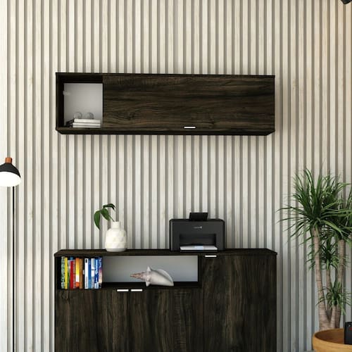 Armário Aéreo com Nicho e Porta Basculante 35x135x35cm Carvalho/Preto - Marrom