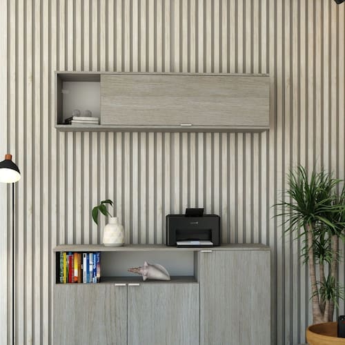O Armário Aéreo com Nicho e Porta Basculante WorkLab é uma peça de mobiliário que alia design contemporâneo e funcionalidade avançada, ideal para escritórios que buscam otimizar o espaço vertical. Com linhas retas e um visual clean, oferece um espaço aberto para decoração ou para manter itens essenciais bem organizados. A porta basculante com pistão a gás permite um acesso fácil e um fechamento suave, evitando impactos e ruídos, além do puxador em alumínio, discreto e funcional. O Armário Aéreo WLNP135 WorkLab é uma solução inteligente que combina estética e praticidade, ideal para manter o ambiente de trabalho organizado e elegante. Acabamento da Porta: BP Acetinado Ambiente Principal: Escritório Complexidade da Montagem: Alta: deve ser montado por um montador especializado Cor: Snow/Branco Cor do Produto: Snow/Branco Cor Interna: Snow Escala de Brilho: Fosco Escala de Brilho da Porta: Fosco Itens Inclusos: 1 Nicho Manual de Montagem e Instalação: https://cdn2.madeiramadeira.com.br/atributo/compace-dalex/2349610-1708-172666607345.pdf Material da Porta: MDP Material do Puxador da Porta: Alumínio Material Principal: MDP Necessita Montagem: Sim Origem do Produto: Nacional Peso: 17,175 kg Possui Espelho: Não Possui Nicho: Sim Possui Pés: Não Possui Portas: 01 Possui Prateleiras: Não Recomendações de Uso, Manutenção e Limpeza: Para a limpeza, utilize flanela seca ou pano macio levemente umedecido em água. Utilize um pano seco em seguida. Evite contato com produtos químicos (solventes, thinner, acetona, etc) e não utilize nenhum tipo de esponja de aço. Sapatas Niveladoras: Sim Sistema de Montagem: Parafuso, Cavilha, Minifix, Dobradiça, Prego e sapata niveladora Suporta Até (kg): 15 kg Tipo de Dobradiça/Corrediça da Porta: Metálica Tipo de Puxador da Porta: Externo