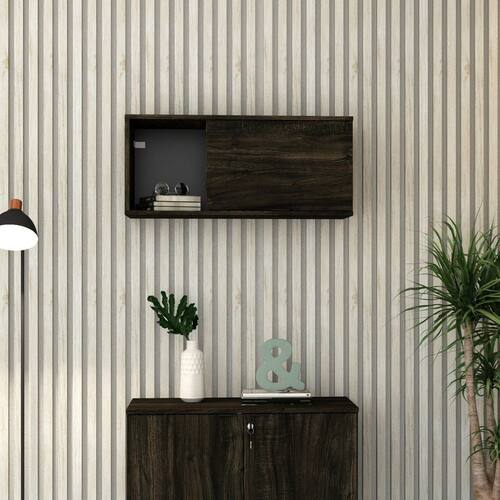 Armário Aéreo com Nicho e Porta Basculante 35x80x35cm Carvalho/Preto - Marrom